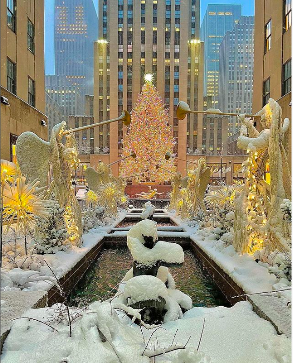 Fin 1931, durant la grande dépréssion, des ouvriers qui participent à la construction du Rockefeller Center, rassemblent l’argent pour acheter un sapin qu’ils embellissent de décorations fabriquées par leur famille. A partir de 1933, le sapin de Noël, installé sur la place du Rockefeller Center deviendra une tradition annuelle. Autre symbole New Yorkais, la patinoire, célèbre pour ses demandes en mariage sur la glace, ouvre sur la place en 1936.